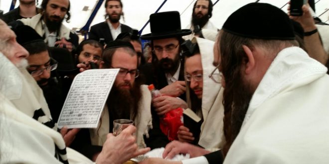 זו הברית השניה בתוך יומיים. צפויים להיות עוד כמה בריתות השבוע. בתמונה רואים את הרב ברנדסדורפר ואת הזמר בערי וובער