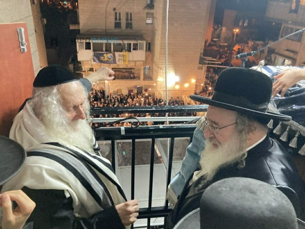 באמצע הריקודים לכבודה של תורה, הגיע להשתתף במעמד הכנסת ספר התורה, ידידו ורעו של מורינו הרב אליעזר ברלנד שליט"א – כ"ק האדמו"ר מספינקא דונלו שהגיע במיוחד מעיר התורה בני ברק לרקוד יחד עם מורינו הרב שליט"א לכבודה של תורה. במשך דקות ארוכות כ"ק האדמו"ר מספינקא רקד יחד עם מורינו הרב אליעזר ברלנד שליט"א כשניכרת חיבת הצדיקים הגדולה זה לזה.