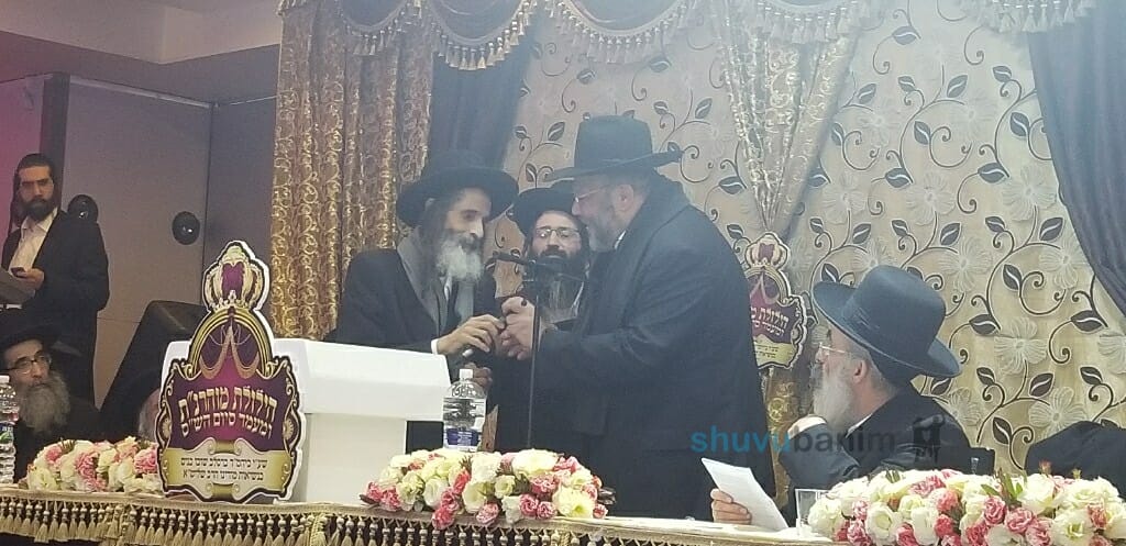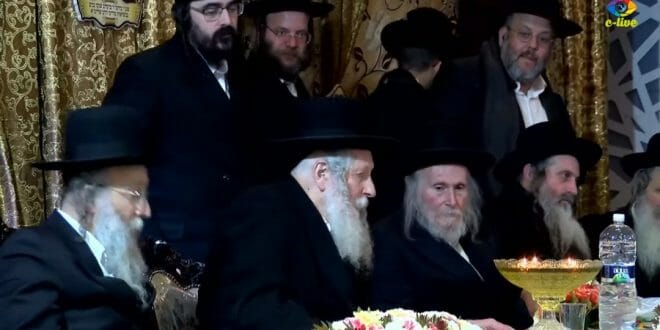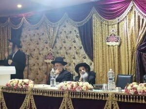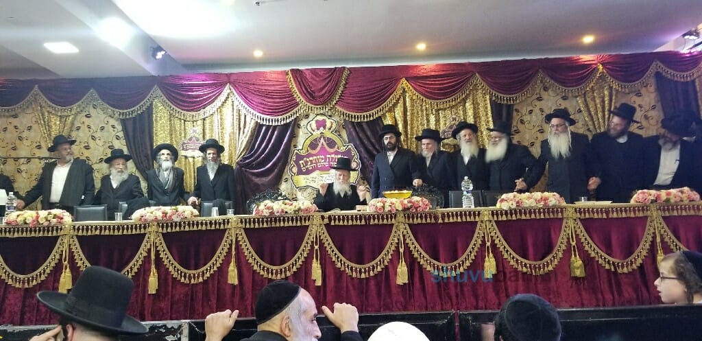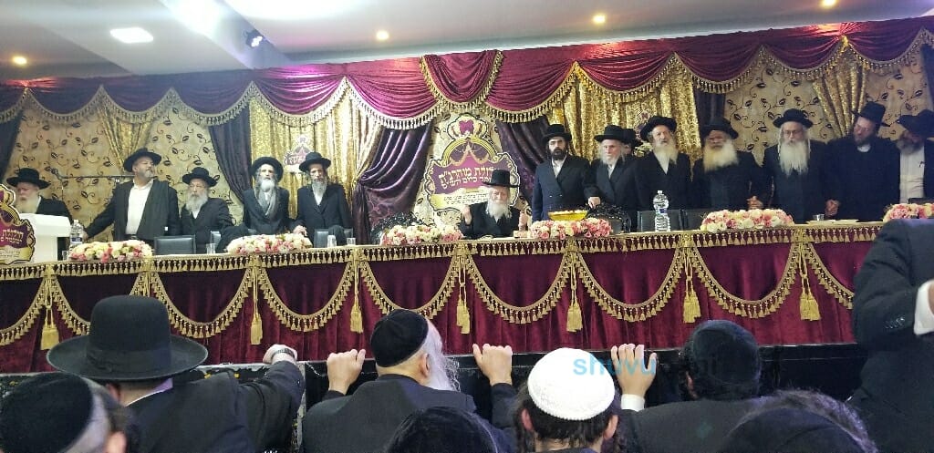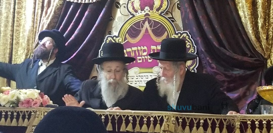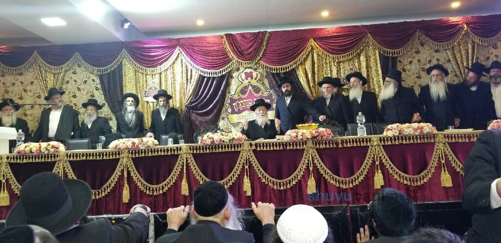 משמאל לימין – הרב נחמן ברלנד מורנו הרב אליעזר ברלנד שליטא הרב יהושע דב רובינשטיין הרב אליהו סוכות הרב שמואל שטרן