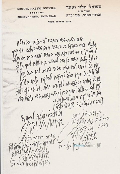 לעיל – מכתב תמיכה מאת הרב שמואל הלוי וואזנר, מחבר שו"ת "שבט הלוי" וחידושי "שבט הלוי" על הש"ס ועל התורה. כיהן כאב"ד ומרא דאתרא בשכונת זיכרון מאיר, וראש ישיבת חכמי לובלין בבני ברק. כונה בפי רבים בציבור החסידי "פוסק הדור" – שמצטרף יחד עם גדולי הדור (ככתוב במכתב) לתמוך בכ"ק הגה"צ הרב אליעזר ברלנד שליט"א, במפעל האדיר להחזרה בתשובה של רבבות בישראל.