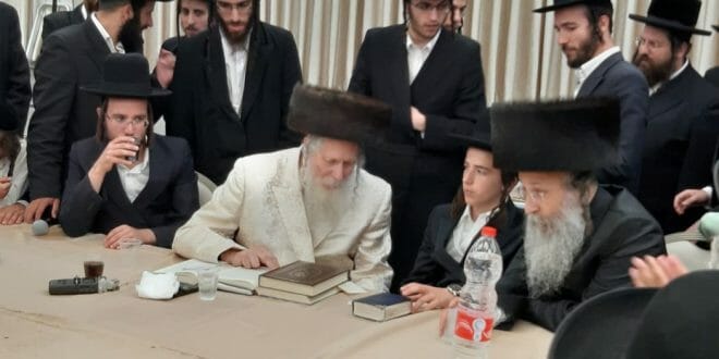 הרב שליט"א הגיע לאולם קרוב לשעה 12 בלילה, רקד עם בנו ונכדו חתן הבר מצווה, ולאחר מכן מסר שיעור בפני מאות המשתתפים.