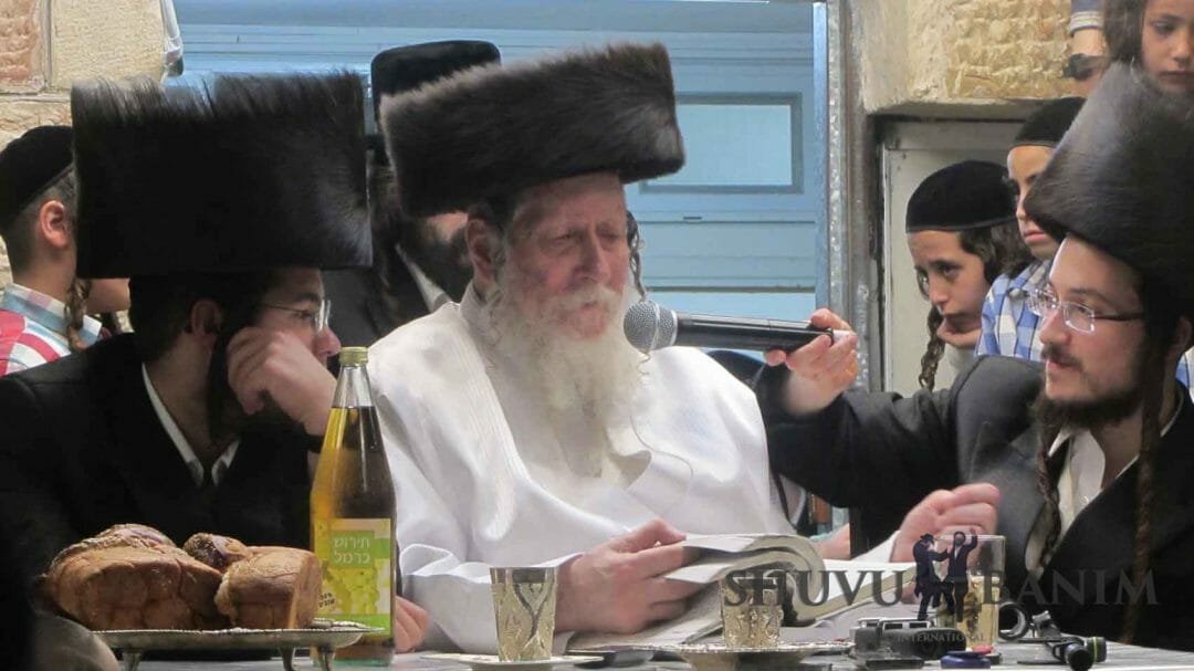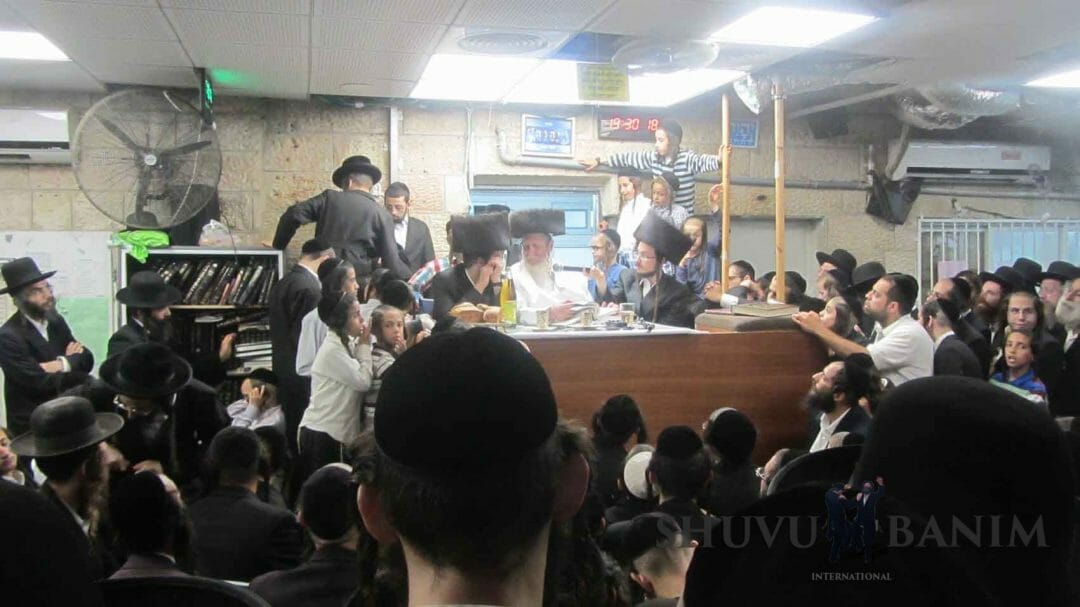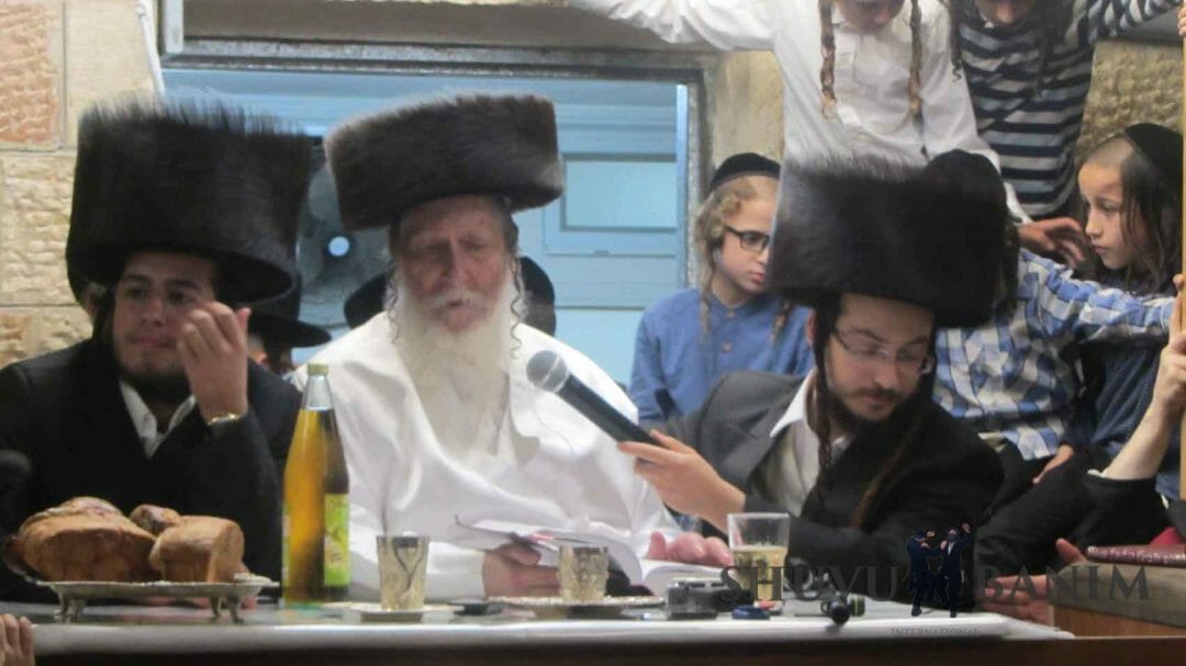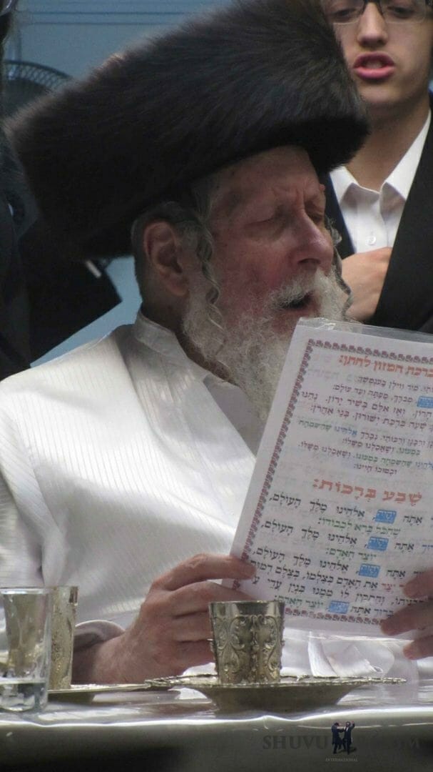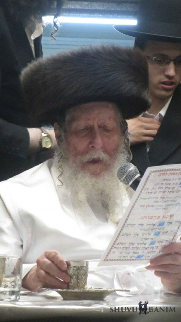 עוד ממראות הקודש משמחת השבע ברכות של החתנים, שמואל איזיק, בן הרב נתן רובינשטיין, נכד כ"ק הגה"צ הרב אליעזר ברלנד שליט"א. וכן לחתן נחמן בן הרב חיים רייכר שליט"א, נין הרב ברלנד.