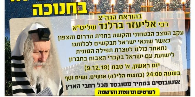 "כל מי שייקח על עצמו הוצאות של אוטובוס שלם מירושלים לחברון, שהם אלף וחמש מאות שקלים, עבור העצרת חנוכה בחברון, ובזה יעזור לכנס ההתעוררות. שכזה כנס עוד לא היה מבריאת העולם, אור החנוכה, אור שבעת הימים שלפני בריאת העולם, האור של ש"ע ריבוא נהורין שהיו בחווה (אשת אדם הראשון)."