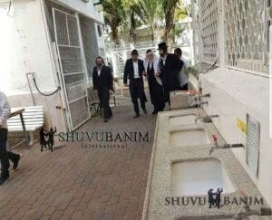 הרב ברלנד שליט"א והגבאים בכניסה למשכנו הקדוש של ר' דוד אבוחצירא שליט"א