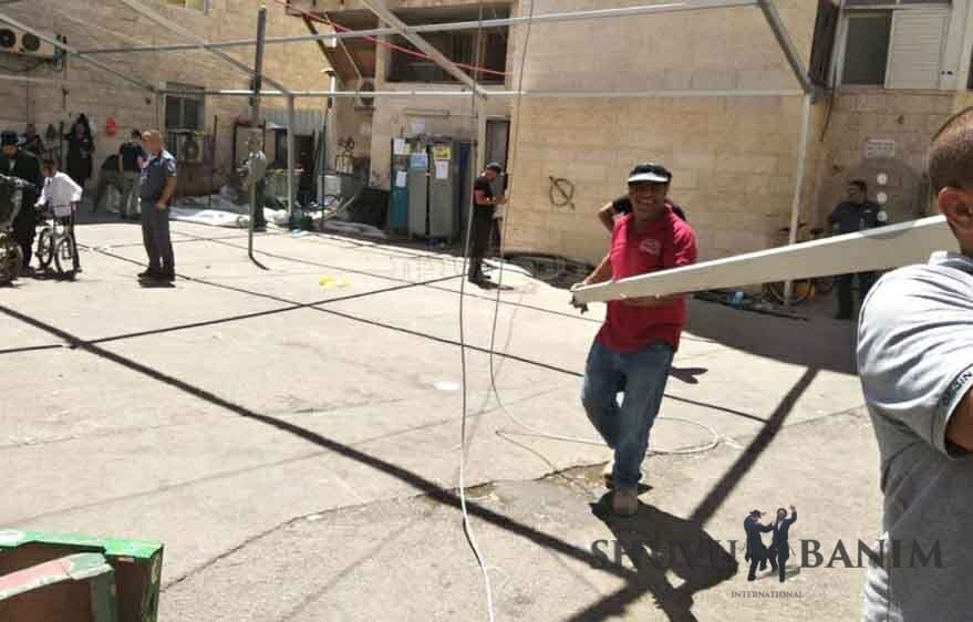 עובדי העירייה מפרקים את אוהל התפילה של הגה"צ הרב אליעזר ברלנד שליט"א וקהילת שובו בנים