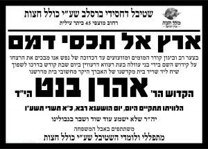 שינוי מיקום ההלוויה של הקדוש אהרן בנט תצא מבית הלוויות שמגר להר המנוחות ולא להר הזיתים. סופית.