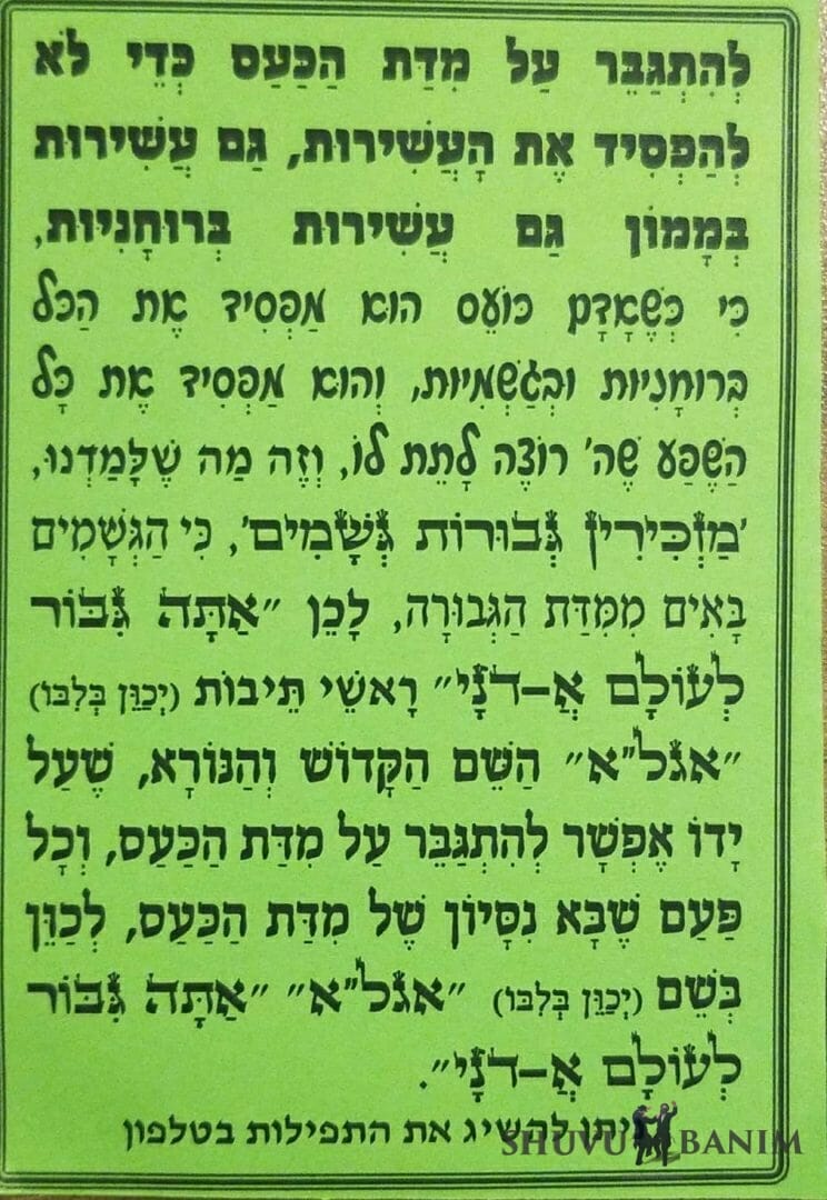 תפילות נפלאות שחיבר מורינו, כ"ק הגה"צ הרב אליעזר ברלנד שליט"א לזכות להינצל מהכעס שהוא מידה קשה ונוֹרָאָה המפסידה לאדם את העשירות.