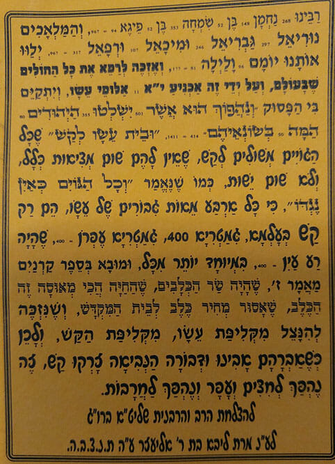 תפילה להתפלל בהתלהבות בניגונים ובריקודים – לזכות להיות אש להבה אליך יומם ולילה, ולדעת שכל הגויים משולים לקש, ואין להם מציאות וישות, ולהינצל מקליפת כלב