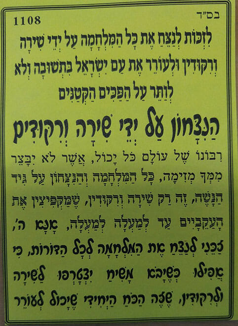 תפילה הניצחון על ידי שירה וריקודים – לזכות לנצח את כל המלחמה על ידי שירה וריקודים ולעורר את עם ישראל בתשובה ולא לוותר על הפכים הקטנים
