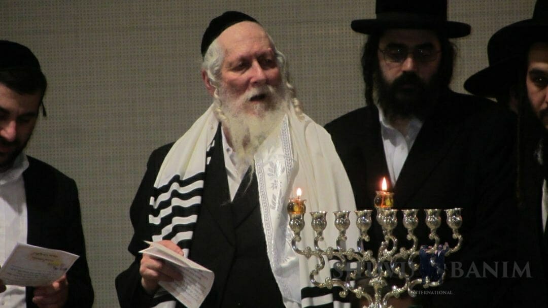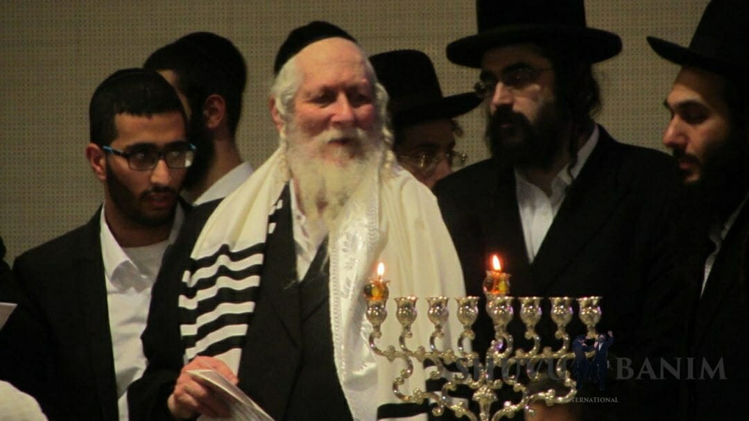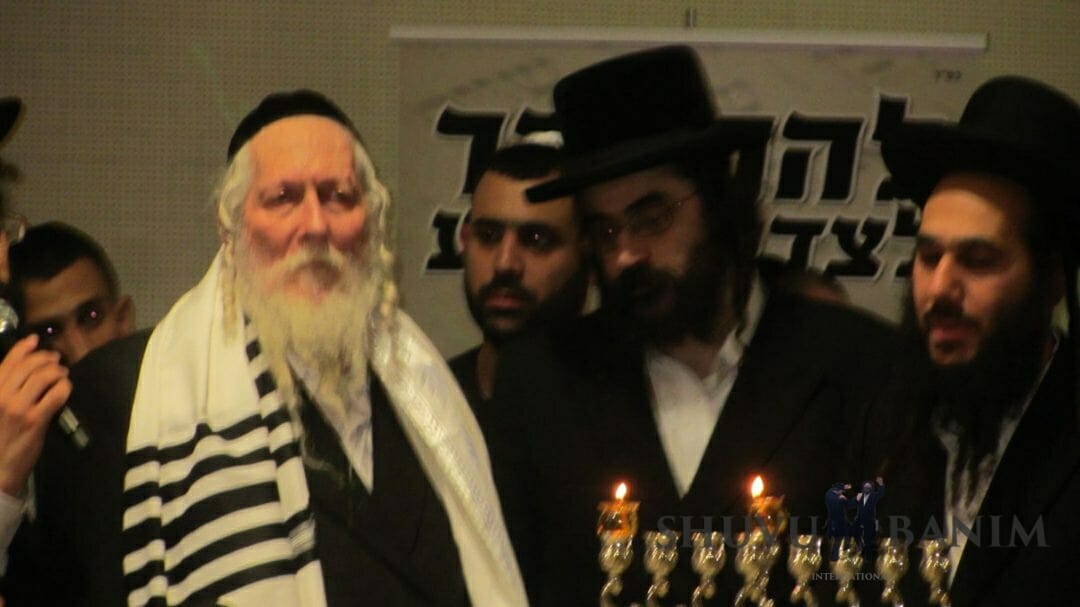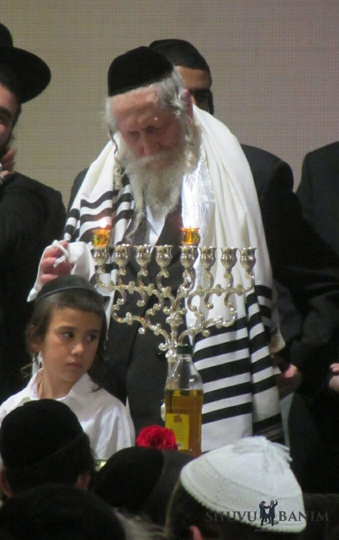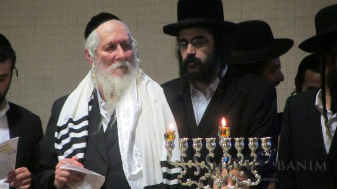 הגה"צ הרב אליעזר ברלנד שליט"א מדליק את הנר הראשון של חנוכה באשדוד