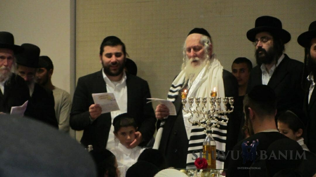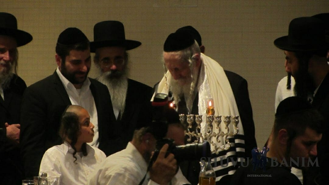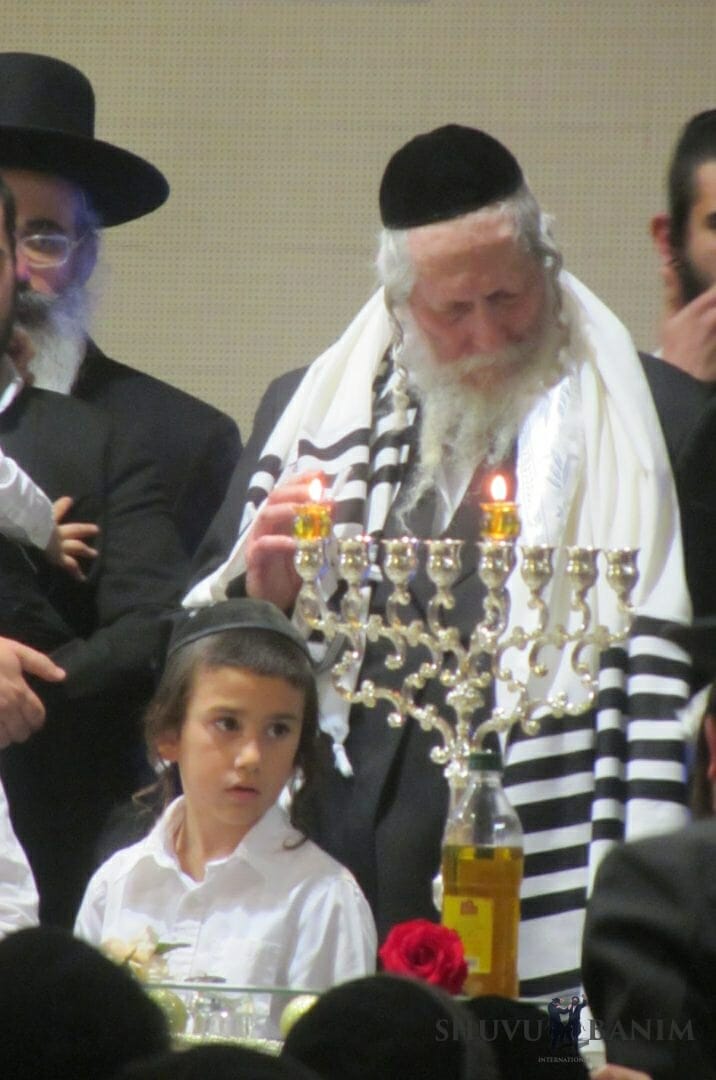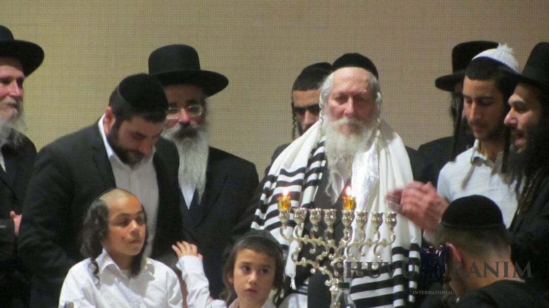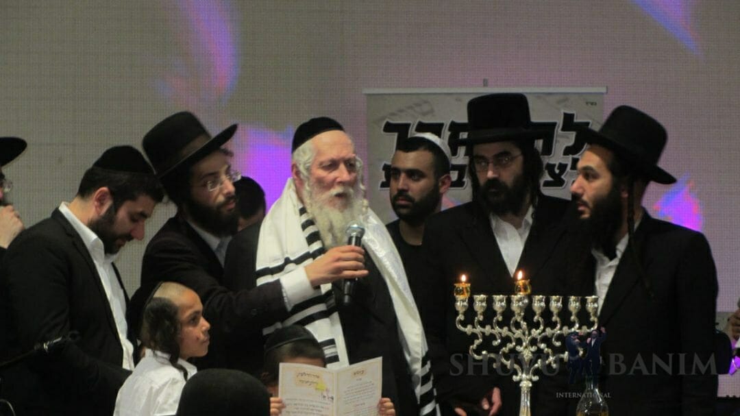 הגה"צ הרב אליעזר ברלנד שליט"א מדליק את הנר הראשון של חנוכה באשדוד
