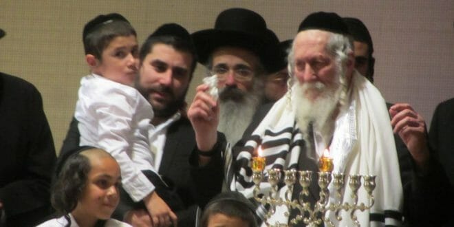 הגה"צ הרב אליעזר ברלנד שליט"א מדליק את הנר הראשון של חנוכה באשדוד