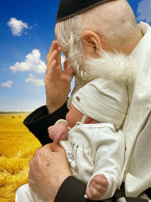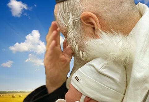 מורינו, כ"ק הגה"צ הרב אליעזר ברלנד שליט"א, מברך את אבי הבן שמעון כהן מאנ"ש, ואת בנו בכורו הרך הנולד נ"י.