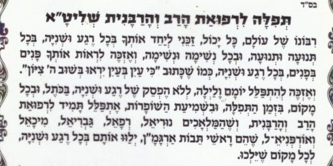 מצבו הבריאותי של הרב שליט"א אינו טוב וכל מי שמגיע לתפילות עם הצדיק רואה זאת בנקל. הרב מוסר נפש עד טיפת הדם האחרונה שלו, וזה לא רק ביטוי, זאת האמת ממש. לכן אנו מביאים את התפילה המפורסמת לרפואת הרב והרבנית בכדי שלכל אחד מאיתנו יהיה סדר קבוע של תפילה על הצדיק, כ"ק מורינו הגה"צ הרב אליעזר ברלנד שליט"א שכל כולו מסירות נפש על עם ישראל.