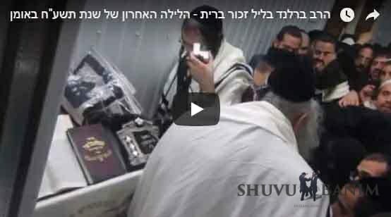 הקהל כולו שמח להתאחד סביב הצדיק בתפילה הכ"כ חשובה, מעבירים לרב שליט"א את פדיונות הנפש כמקובל בישראל לפני ראש השנה. מיד לאחר מכן המשיך הרב ברלנד שליט"א לתפילת השחרית עם קהל האלפים תוך שהוא עטור בטלית ותפילין.
