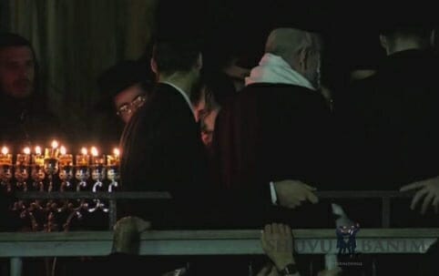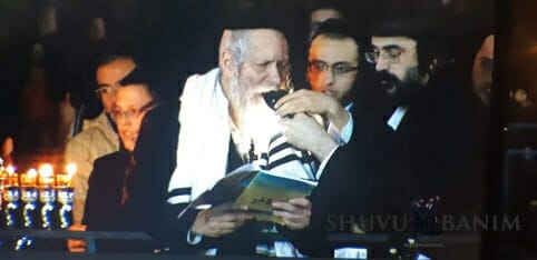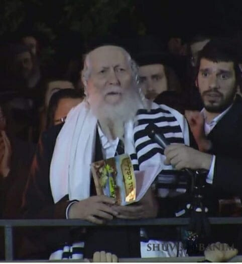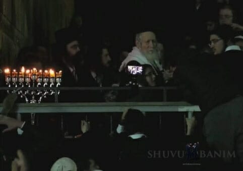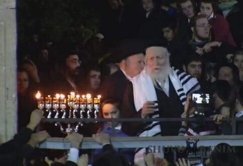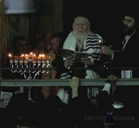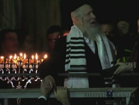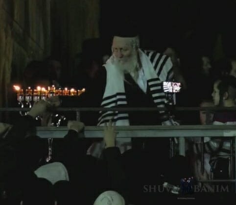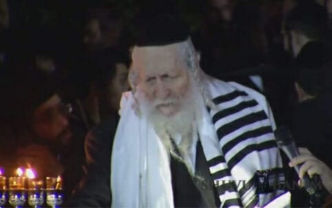 הגה"צ הרב אליעזר ברלנד בהדלקת נר שמיני של חנוכה – 'זאת חנוכה' בעצרת ההמונים במערת המכפלה