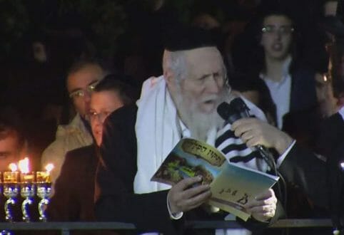 הגה"צ הרב אליעזר ברלנד בהדלקת נר שמיני של חנוכה – 'זאת חנוכה' בעצרת ההמונים במערת המכפלה