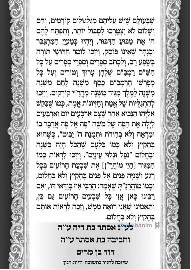 תפילה לילדים שידברו ויגדלו בתורה והמיוחדת להיום שאנו סופרים גבורה שבנצח, ממורינו כ"ק הגה"צ הרב אליעזר ברלנד שליט"א