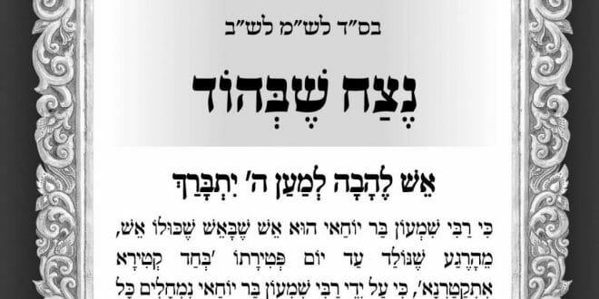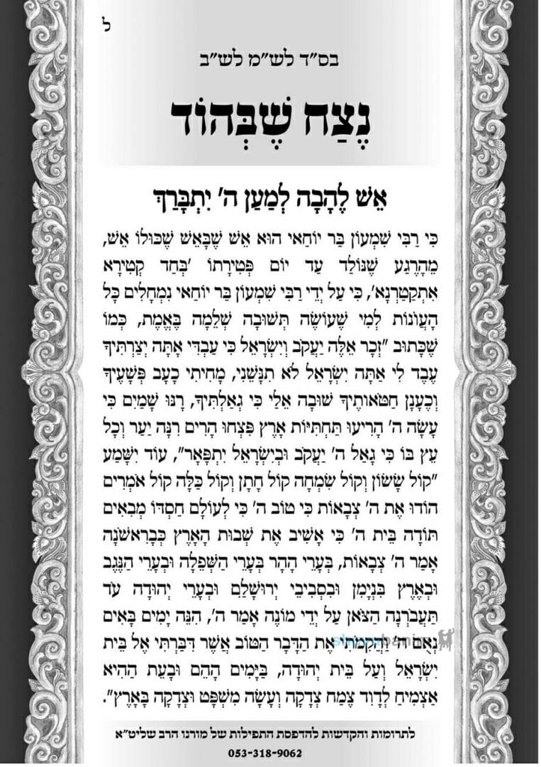 תפילה לימי ספירת העומר, נצח שבהוד, ממורינו כ"ק הגה"צ הרב אליעזר ברלנד שליט"א – "כִּי רַבִּי שִׁמְעוֹן בַּר יוֹחַאי הוּא אֵשׁ שֶׁבָּאֵשׁ שֶׁכֻּלּוֹ אֵשׁ"