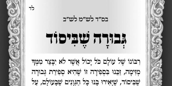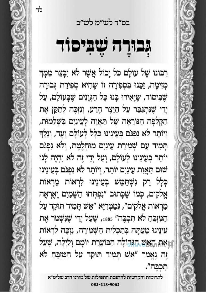 תפילה לימי ספירת העומר, גבורה שביסוד, ממורינו כ"ק הגה"צ הרב אליעזר ברלנד שליט"א –