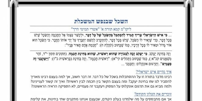 העלון עיקר הצדיק גיליון מס' 21 לפרשת במדבר השכל שבנפש המשכלת