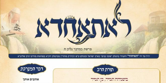 העלון לאתאחדא גיליון מס' 8 - פרשת במדבר יוצא לאור על ידי "האיחוד" דחסידי ברסלב "שובו בנים" בארץ ישראל ובעולם ע"ש רביה"ק מוהר"ן מברסלב זיע"א, בנשיאות מורינו, כ"ק הגה"צ הרב אליעזר ברלנד שליט"א