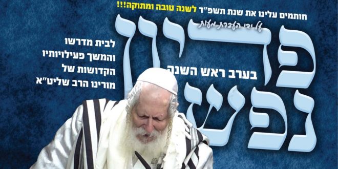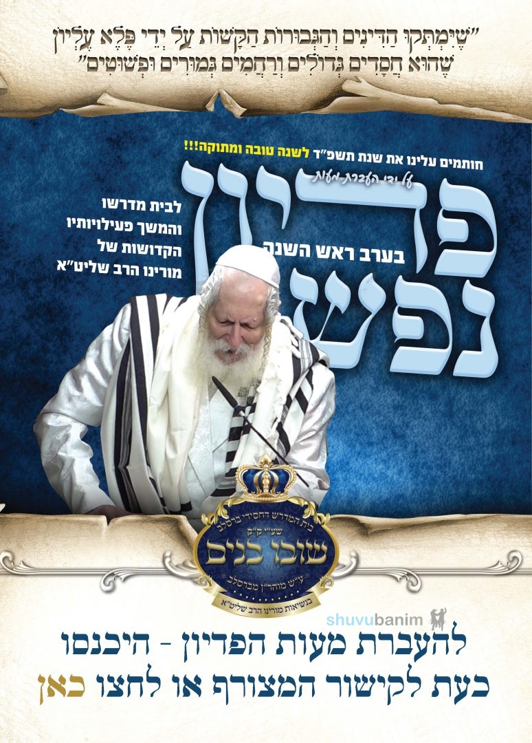 שיומתקו הדינים • בהוראת רבני הקהילה: פדיון ערב ראש השנה ל'איחוד חסידי ברסלב – שובו בנים'