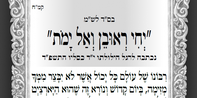 היום י"ד כסליו חל יום הילולתו של ראובן בן יעקב לפניכם תפילה שכתב הגה"צ רבי אליעזר ברלנד שליט"א בשבוע שעבר במיוחד ליום הילולתו התשפ"ד