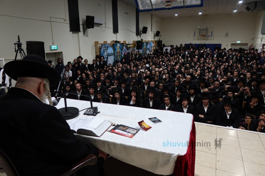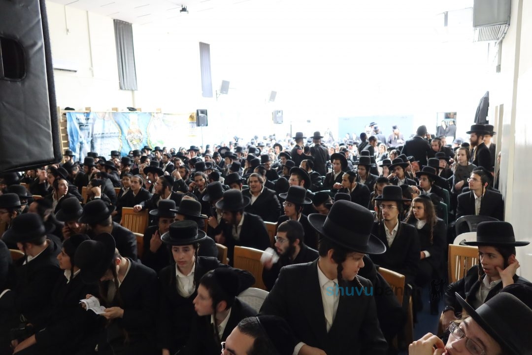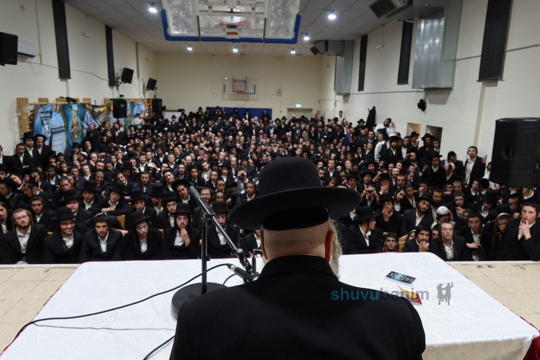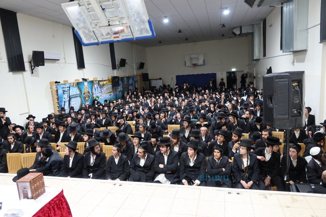 הס הושלך באולם עם החל מורינו הרב שליט"א במשא קודשו למאות הבחורים דברים היוצאים מליבו של עולם וחודרים אל לב כל בחור באשר הוא. תחילת דבריו מורינו הרב אמר כי המלחמה של החשמונאים הייתה נגד טומאת יוון וכיום זה הסמרטפונים וכלי הטכנולוגיה אשר הורסים כל חלקה טובה באדם היהודי. לאחר מכן דיבר מפרשיות השבוע ממחלוקות האחים ויוסף ומכך שיוסף ישב בבית האסורים ואמר שאם אדם יש לו שכל הוא יודע לנצל את השבי להתעלות בלימוד הגמרא ובתפילות מתוך התבודדות וזה מה שיוסף עשה. לאחר מכן אמר כי פרשת ויגש זו הפרשה הכי חשובה כי זו פרשת התגלות הצדיק "אני יוסף" ואמר שהשנה זכינו שהפרשה תצא בהילולת מוהרנ"ת עניין נדיר כשלעצמו שיצא לפי הלוח רק בעוד 17 שנה. לאחר מכן חזר לענין מחלוקות האחים ויוסף שנחלקו אף על אבר מן החי האם שייך גם בעוף או רק בבשר כמחלוקת הכרתי ופלתי והרדב"ז בדעת הרמב"ם. לאחר מכן הביא את קושית הרמב"ן מדוע יעקב מקלל את שמעון ולוי שלא קיבלו את נחלתם בארץ הקודש הרי הם שחררו את בתו – דינה מהשבי, ומענין לענין אמר כי גם רבינו הקדוש נשבה בדרכו לארץ ישראל על ידי הפלישתים. וכן הבעש"ט ובתו, ובתוך דבריו סיפר במתק לשון את סיפור הבעש"ט וכיצד ניצל בזכות אותיות הא' ב'.