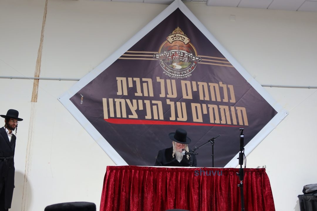 בשעה 20:00 נפתחו שערי אודיטוריום 'קרל נטר' בשכונת ארץ חפץ בירושלים. מאות מאות של בחורי חמד חסידי ברסלב שובו בנים צבאו על פתחי האולם אט אט נכנסו ההמונים לקול צלילי התזמורת, לאחר זמן מה עלה אל הבימה ראש מוסדות קבר רחל הרה"צ ר' משה מנחם קלוגר שליט"א שחיזק את הבחורים להיות כמו החשמונאים לזכות לשמור על פך השמן הטהור להתרחק ולהתנזר לגמרי מכל פגעי הטכנלוגיה אשר נאסרו ע"י מורינו הרב שליט"א וכל גדולי ישראל עמו.