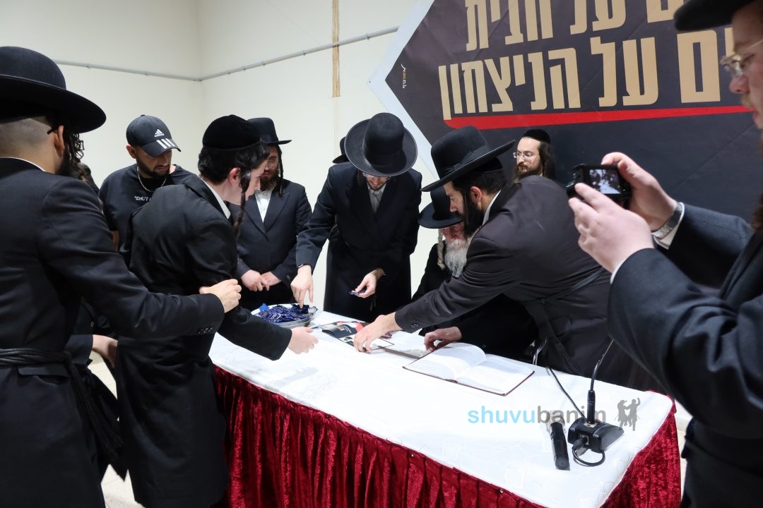 Later, our teacher Rabbi, may he be well, left for his sacred home, and the holy group settled into their places. The boys had the special opportunity to view a presentation that had been prepared with great effort. The heads of the group, who had entered the holy inner circle weeks ago, shared their experiences, guidance, and direction received from our teacher Rabbi on how to distance themselves from these impure devices. True knowledge requires the true Torah. The boys concluded the event with the entertaining 'Clickers' program, bringing much laughter to the faces of the delighted youth.