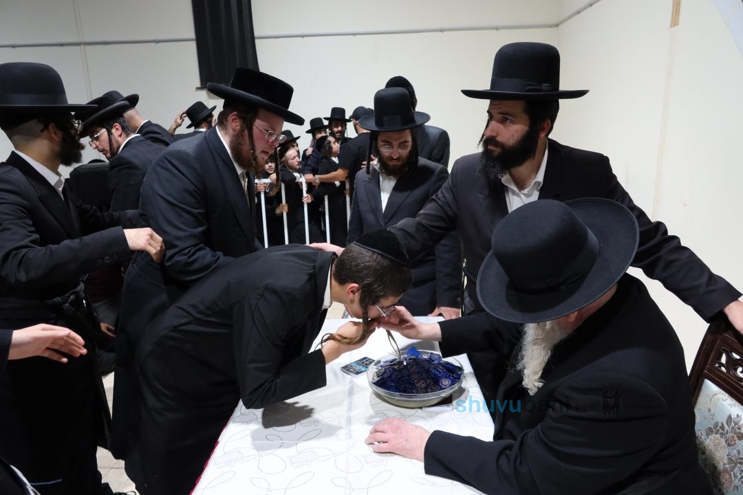 After this discourse, hundreds of boys took turns receiving the 'Hanukkah Gelt' from our teacher Rabbi, may he be well. Amidst joyous circles and dances, the boys celebrated the privilege of being Maccabees in our generation during the holy days of Hanukkah.