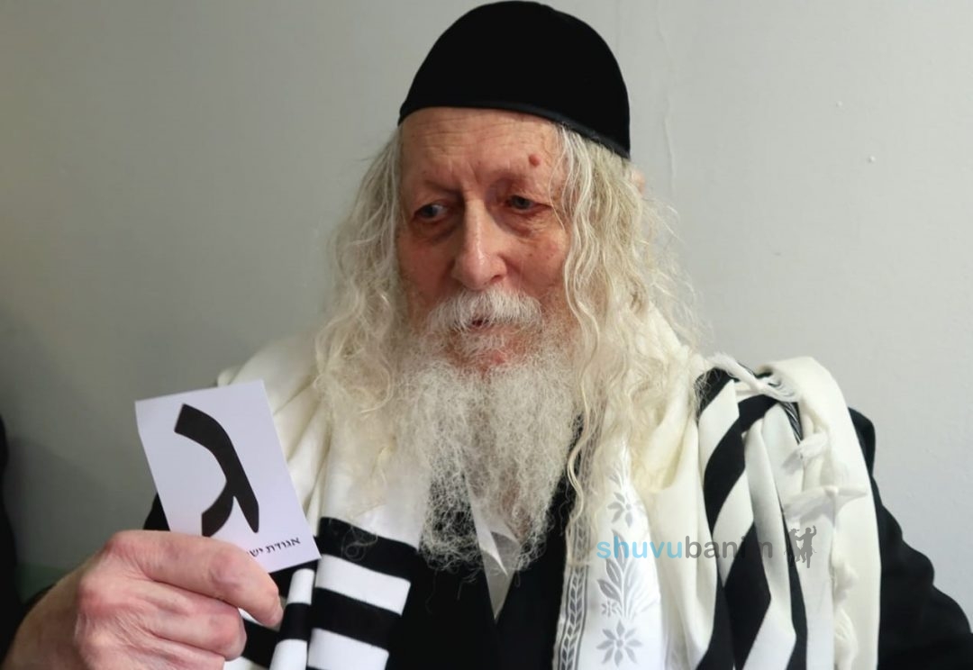 הגה"צ רבי אליעזר ברלנד שליט"א עם שחר הצביע עבור מפלגת 'אגודת ישראל' – ג' לעיריית ירושלים.