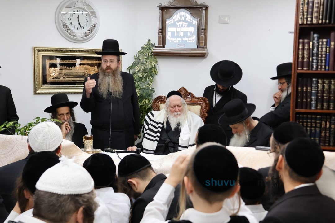 לאחר מכן החלו בשירי הודיה והלל לבורא עולם על הזכות להיות שותפים בכתיבת ספר התורה של עם ישראל כלשונו הטהורה של הרב שליט"א. את המעמד נעל אחד מהדרשנים אשר עורר ודיבר על הזכות להיות שותפים בספר התורה.