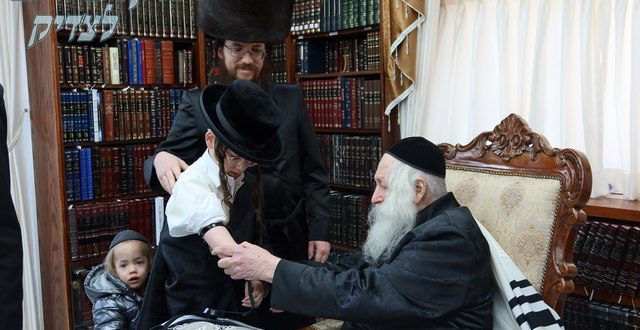 מעמד הנחת תפילין בחדרו של מורינו הרב שליט"א לחתן הבר מצווה מרדכי מאיר נ"י ב"ר שמואל אייזיק צוקר הי"ו: