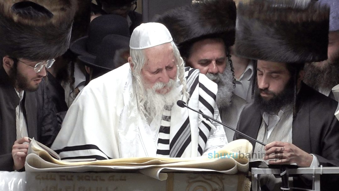 בשעה 19:00 מורינו הרב שליט"א בירך את שלושת הברכות והחל בקריאת המגילה. במשך ארבעים דקות תמימות מורינו הרב שליט"א קרא את המגילה ברטט ובזיע, הרב חי כל פסוק ופסוק וכל קטע מהמגילה כקורה לפניו ממש עכשיו נס פורים המתחדש בכל רגע ורגע. כבכל שנה מורינו הרב שליט"א אף נשנק קולו בבכי בפסוק "ובהגיע תור אסתר בת אביחיל דוד מרדכי…" אשר נקרא במונח מונח, ואף בפסוק "להשמיד להרוג ולאבד". אין לתאר את העוצמות שיש בקריאת המגילה בניגון המיוחד ובנעימת קולו הטהור של מרדכי הצדיק של דורינו אנו!