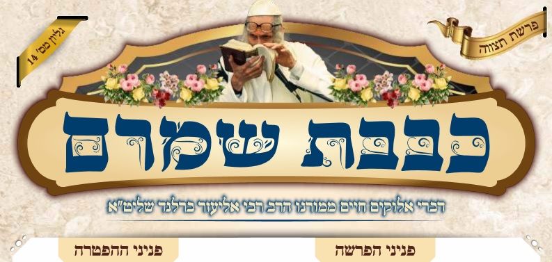 דברי אלוקים חײם מכ"ק מורנו הגה"צ הרב אליעזר ברלנד שליט"א לפרשת תצוה.