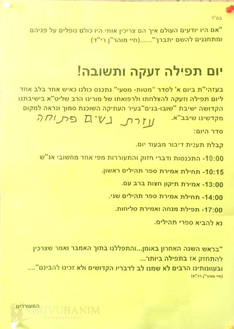 → חזרה לכל המאמריםהיום! יום תפילה זעקה ותשובה בישיבת שובו בנים עיר העתיקה ירושלים12 ביולי 2015•עורך ראשיחדשות,מבזקים📖הדפסהשתף בוואטסאפ → המאמר הקודםצפו: ריקודים כעת לאחר עצרת היומית בכותל המערבי להצלחתו של הגה"צ רבי אליעזר ברלנדהמאמר הבא ←מסר חדש מאת הגה"צ רבי אליעזר ברלנד שליט"א ממקום מסתור ר"ח אב תשע"ה 17/7/15הירשמו לניוזלטרקבלו מאמרי תורה והתחזקות ישירות לתיבת הדואר שלכםהרשמה→ חזרה לכל המאמרים