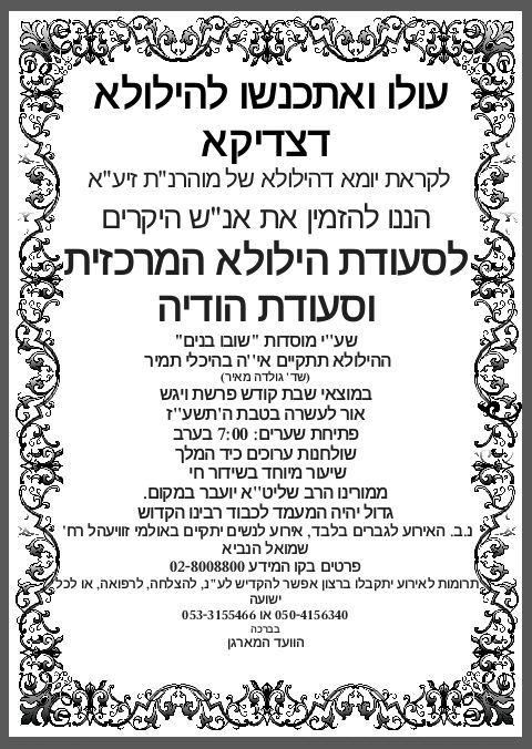 עלו והתכנסו להילולה הקדושה, הכריזו המודעות ואכן המונים הגיעו לאולמי תמיר שבירושלים לכבודו של רבי נתן מברסלב, תלמידו המובהק וממשיך דרכו של רבי נחמן מברסלב.