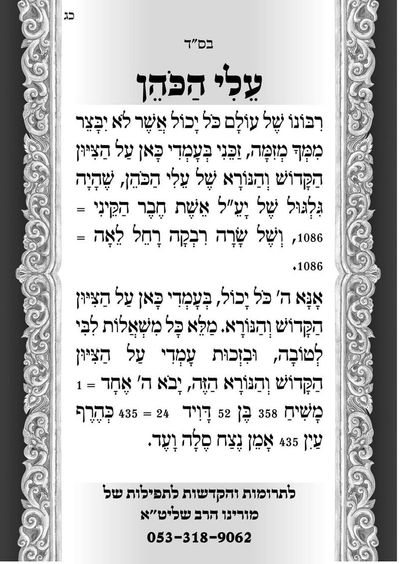 עלי הכהן - תפילה על הציון מהגה"צ הרב אליעזר ברלנד שליט"א