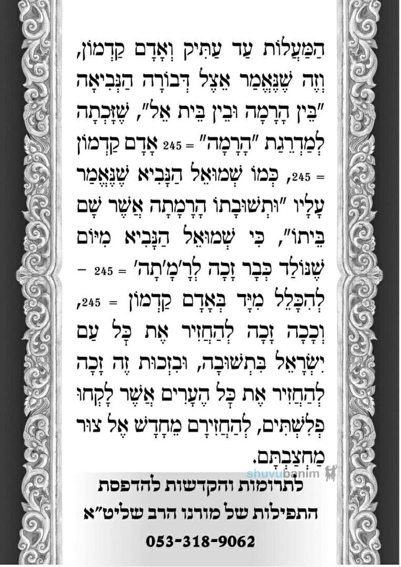 בעקבות השריפה שפקדה את קבר בנימין הצדיק - הגה"צ רבי אליעזר ברלנד שליט"א כתב תפילה לאומרה בציונו הקדוש: