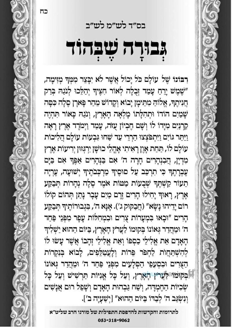 → חזרה לכל המאמרים'אָנָּא ה' בִּגְבוּרָתְךָ תְּבַקֵּעַ הָרִים' - תפילה לגבורה שבהוד15 במאי 2022•חדשות שובו בניםגבורה שבהודספירת העומרתפילההדפסהשתף בוואטסאפתפילה לימי ספירת העומר, חסד שבהוד, ממורינו כ"ק הגה"צ הרב אליעזר ברלנד שליט"א: היום שלֹשים יום שהם ארבעה שבועות ושני ימים לעומר - הָרַחֲמָן הוּא יַחֲזִיר לָנוּ עֲבוֹדַת בֵּית הַמִּקְדָּשׁ לִמְקוֹמָהּ, בִּמְהֵרָה בְיָמֵינוּ אָמֵן סֶלָה. לפניכם התפילה שכתב מורינו הרב ברלנד שליט"א: → המאמר הקודםבצל הפיגועים - מורינו הגה"צ רבי אליעזר ברלנד שליט"א העתיר בתפילה עבור כלל עםהמאמר הבא ←"וְנִזְכֶּה בְּתִפְאֶרֶת שֶׁבְּהוֹד לָעֲשִׁירוּת..."הירשמו לניוזלטרקבלו מאמרי תורה והתחזקות ישירות לתיבת הדואר שלכםהרשמה→ חזרה לכל המאמרים