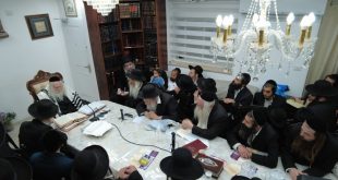תושבי ישוב בית שקמה בשיעור במעונו של הגה"צ רבי אליעזר ברלנד שליט"א