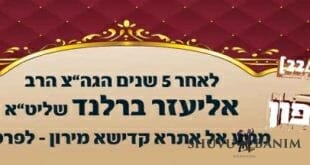 רגע לפני שיעלו רבבות עם ישראל אל הכנס הענק בצפון פנה כ"ק מורינו הגה"צ הרב אליעזר ברלנד שליט"א להכין את הלבבות בכנס אלעד המרהיב. לאחר 5 שנים שלמות בהם הרב ברלנד שליט"א לא הגיע למירון יעלה הצדיק הקדוש ב- ז' באדר יחד עם רבבות עם ישראל אל אתרא דבוצינא קדישא, ר' שמעון בר יוחאי. במשך השנים דיבר הרב שליט"א רבות …