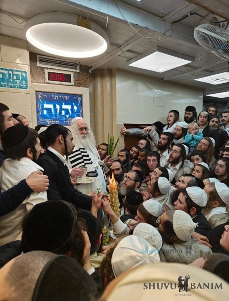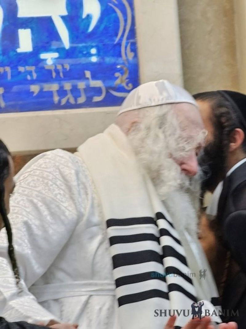 “Torah from Sinai” – Also this Shabbat – the Shabbat of Kabbalat HaTorah (receiving of the Torah) – we merited to pray with the Gaon and Tzaddik Rabbi Eliezer Berland shlit”a. For nearly nine hours we merited to be in the presence of Moreinu HaRav shlit”a. On Friday afternoon, the Rav came out to Mincha shortly before candle lighting (4:28 pm). Then came Kabbalat Shabbat with “Lecha Dodi” lasting over 42 minutes with unmatchable pleasantness. We must note that over a period of an hour and a half, throughout Minchah, Kabbalat Shabbat, and Lecha Dodi, nearly a thousand people – men, women, and children – stand under the open skies with drops of rain falling on Shabbat evenings. After Kabbalat Shabbat, which lasted about an hour, the Rav continued with Maariv and the Zemirot (songs) of Shabbat evening. After nearly two and a half hours, he returned to his holy home at 6:40. On Shabbat morning at 4:30, the Rav shlit”a entered early for prayers, some two hours before sunrise. With Shacharit lasting some two hours, the Rav began with Tikkun Chatzot, the morning Zemirot, Korbanot, and Pesukei D’Zimra with great vitality, all the niggunim (melodies) with fervor, even though during this Shabbat, the Rav was feeling weak, and he sped up the niggunim slightly. Still the shortest prayer at Shuvu Banim lasts for many hours. Every niggun was 3-4 minutes. The Shabbat brought joy to the souls! The Rav stood for the Amidah at the minute of sunrise at 6:30, some two hours after having begun the prayers. Afterwards, the Rav shlit”a led the repetition of the Amidah. The high point of the Shabbat was, of course, the reading of the Ten Commandments. Moreinu HaRav shlit”a began the Torah reading at 6:50 in the morning, as one by one, those with Simachot or Yarhzeit’s came up for their Aliyah. Then when they reached the Aliyah of the Ten Commandments, Moreinu HaRav shlit”a was honored to ascend to the Torah. After the blessings, the entire giant congregation – men, women, and children -- were silent, and a bird did not chirp, nor did a baby cry. Moshe Rabbeinu of the generation spoke and God replied with a Voice – “Anochi.” There is no describing the exaltation and awe during the reading of the Ten Commandments. The reading of the Torah was concluded by the Bar Mitzvah boy Shmuel Izik Levit, who also finished the Haftarah of “Chazon Yeshayahu” with a clear and resonant voice. Shortly before 8:00, they stood for Musaf. After Musaf, the Rav shlit”a continue the prayer in order, from “Kavei el Hashem” until the Tikkun HaKlali. After the completion of the Ten Psalms of Rebbe Nachman with a pleasing melody, the Rav shlit”a said Kiddush and gave over words of the Living God in which he spoke about David’s desire to conquer all the way to Rome, and about the mystery of the distinction between the verses, “Who will bring me to the besiege (matzor) city,” and in another place it is written, “Who will bring me to the fortified (mivtzar) city.” At 9:00 am, the Rav shlit”a entered his home after four and half hours of prayer. At sunset, the Rav shlit”a came out for Mincha of Shabbat Kodesh, and afterwards the Third Shabbat Meal was held. For a number of minutes, the Rav shlit”a gave out Shirayim. After that, he began the Zemirot of the Third Meal in his holy way for some twenty minutes, and after this, he sang “Ya-h Ribon Olam” for about fifteen minutes. At the conclusion of the song, he said Zimun on a cup and began his weekly shiur on the book “Pele Yoetz,” in the section on the holiness of man. Before Maariv, they sang “Lamnatzeach Binginot” for a half hour (!). After that was Maariv with songs and niggunim, followed by Havdalah with the singing of “La’Yehudi Hayta Ora…” In Melaveh Malka, he gave over a shiur in “Chayei Moharan.” After this, he entered his home at 8:00 pm, after three hours that we merited to be together with him. Below is a photo gallery from Motza’ei Shabbat (photos courtesy of the Whatsapp group: “HaRav Berland Tzaddik HaDor”):