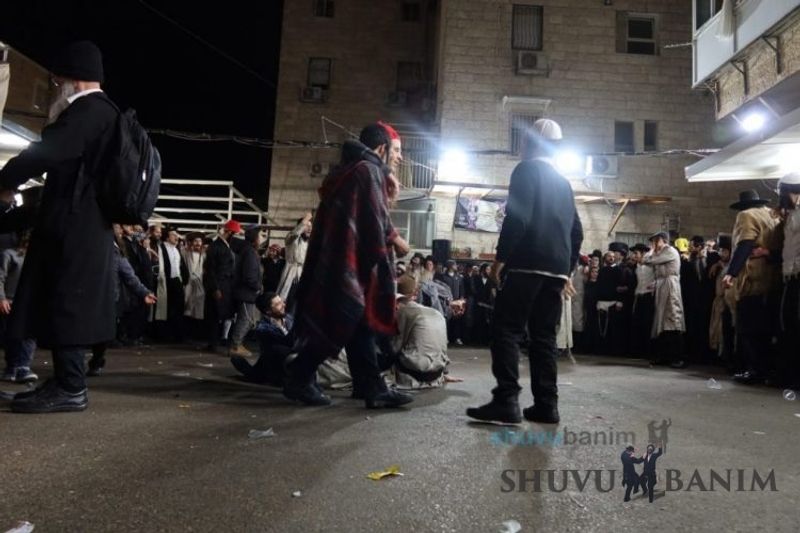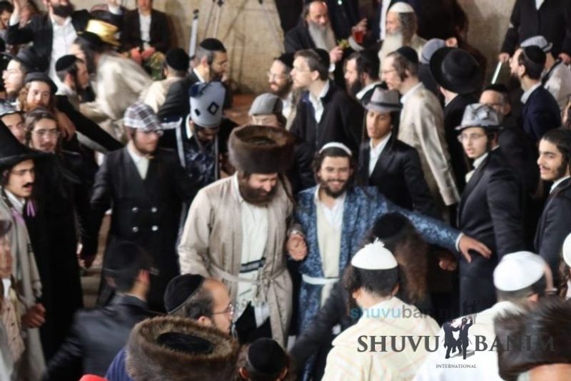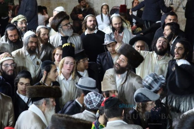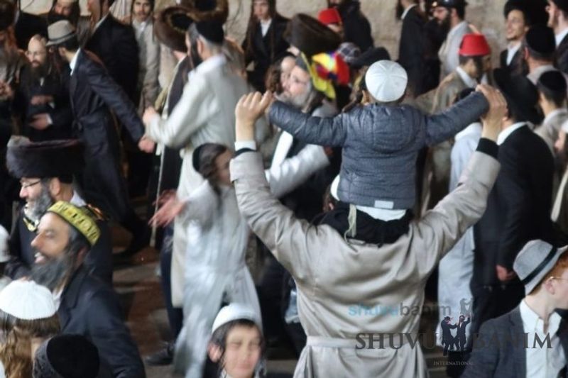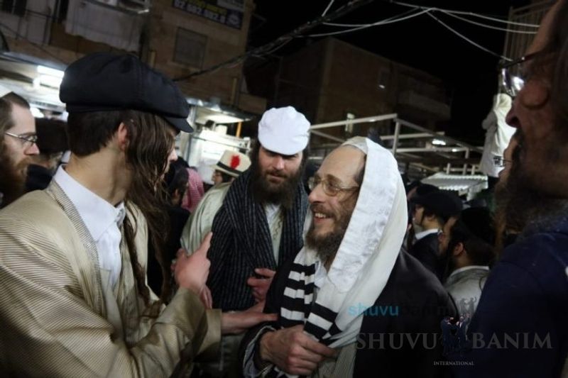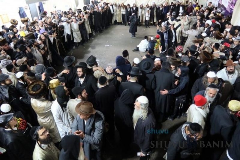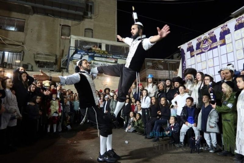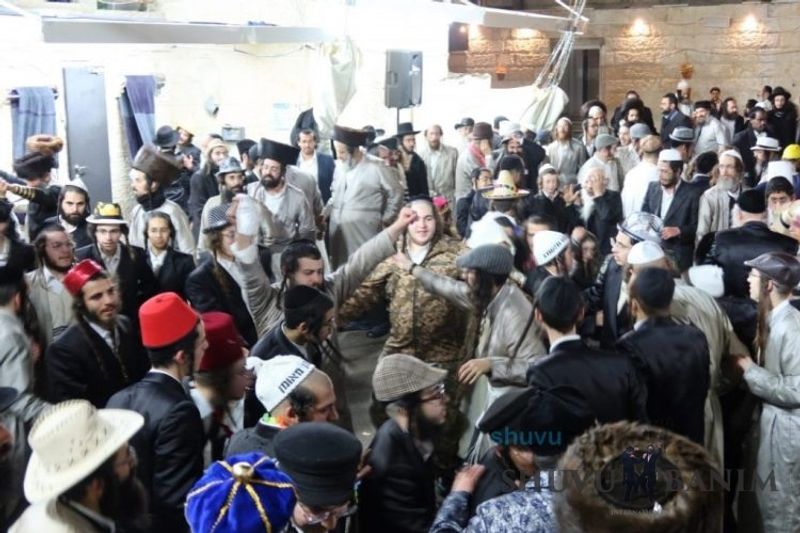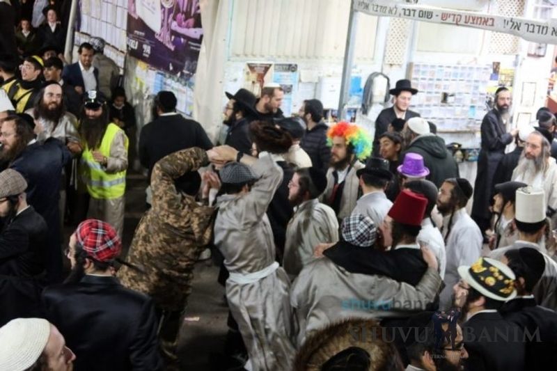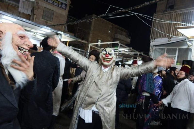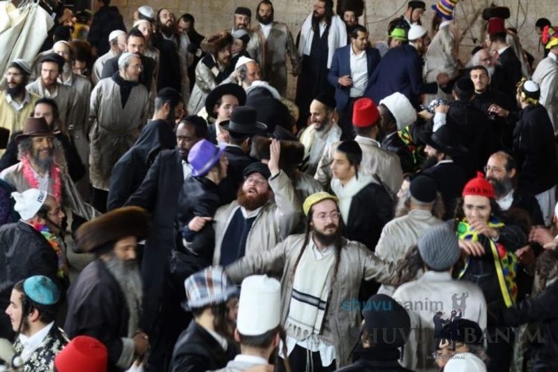 Everyone knows that anyone who wants to experience the true joy of Purim should go to the courtyard of the king’s palace – our Beit Midrash, Shuvu Banim. Like every year, the Purim celebrations were held with adornment that is not found in any place in the world. Unlike previous years, this year, the management of the synagogue did not receive financing from any source for an orchestra or amplification. However, the Gabbai of the synagogue, the dedicated R’ Etiel Yisraeli took onto himself a debt of 5,000 NIS so that the Purim celebration will be in each and every generation, and the salvation of the congregation of Shuvu Banim will be forever. The holy work of music was conducted by the musician R’ Natan Marian, and on the keyboard was R’ Natan Guddes, and the bachurim Simcha Zakai and Yehuda Kohen. At their sides were R’ Nachman Druk on the clarinet and R’ Natan Raz on the saxophone. The Purim feast and dancing began at 1:30 PM, after Minchah Gedolah in our Beit Midrash, with more and more people flowing in from Jerusalem and even from other cities. Wine was distributed to the dancers in order to continue the mitzvah of the day. There is no doubt that such simcha is not found anywhere. As the Rav shlit”a desired, the people were only slightly tipsy, but not drunk. The simcha was true simcha, breaking all boundaries, but without wildness. In the midst of the celebrations, the dancing duo of Shimon Elbaz and Nachman Alshich arrived, who pumped up the rhythm of the simcha with phenomenal and breathtaking performances. Close to 9:30 PM, when the square was already overflowing with thousands of dancers, the songs of emotional arousal began, with the whole congregation of Shuvu Banim joining hands with wondrous and rousing unity. The peak was the song “Acheinu Khol Beit Yisrael – Our brothers, all the House of Israel...” Even the tipsiest person could not remain indifferent to this rousing sight. Close to 10:05 PM, Moreinu HaRav shlit”a entered his balcony for Ma’ariv at the end of this holy day. The joy became many times greater with the song “Or Zarua La’Tzaddik...” This was followed by Ma’ariv and the Breslov melodies of every evening.Photo gallery courtesy of Hitchadshut Magazine – all rights reserved for them: