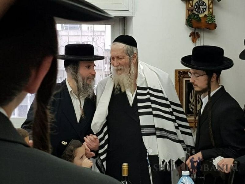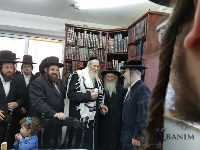 We'd like to wish a hearty 'mazal tov!' to Rav Eliezer Berland, shlita, on the occasion of the engagement of his grandson, Rabbi Shmuel Isaac, son of Rabbi Nathan Rubinstein, to the daughter of Rabbi Binyamin Zeev Yakobson from Kiryat Sefer. Below, we're very pleased to be able to share a selection of photos where Rav Berland celebrates the news with some of his younger followers: