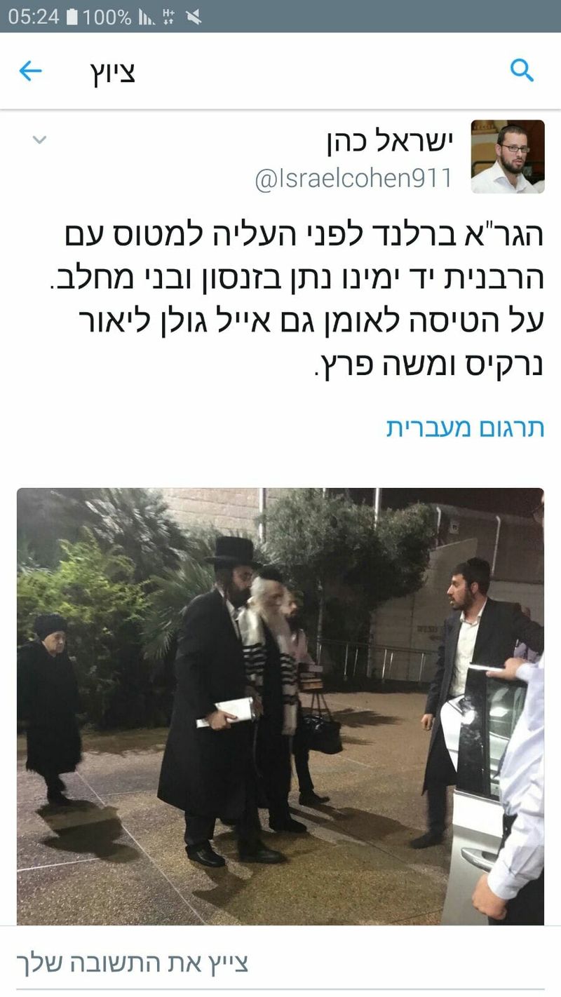 The Rav arrived on a flight to Uman with his wife, the Rabbanit Tehilla, his gabbay, and a number of well-known Israeli musicians including Eyal Golan, Lior Narkiss and Moshe Peretz - plus a large number of court-appointed security guards.