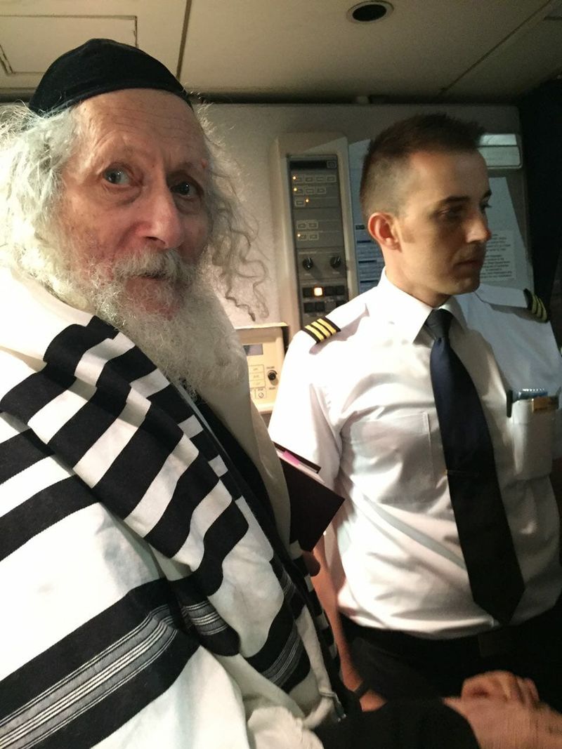 Rav Berland on board the flight to Uman.[/caption]