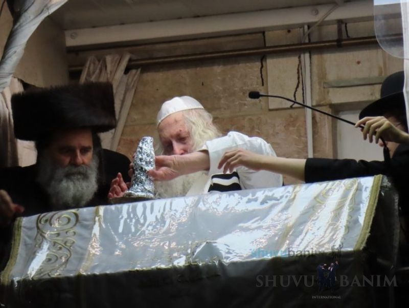 On Erev Shabbat Kodesh, the Rav came out for Mincha about five minutes before candle lighting at 6:26 and began with the song “Or Zarua L’Tzaddik” for some nine minutes with great vitality. After Mincha, he said the order of Hitkashrut word-for-word with everyone repeating after him. Afterwards, the Rav began Kabbalat Shabbat, “Lechu Neranana…,” one psalm after the next, with vitality and all the fervor. Afterwards, exactly at sundown, he began the song “Lecha Dodi” with pleasantness, continuing for some 42 minutes. After this, the Rav continued with the order of Maariv, with all the niggunim of Shuvu Banim. After Maariv, the Rav shlit”a sang all the Zemirot of Shabbat evening before Kiddush, lasting for around a half-hour. At the end of the Zemirot, he entered his home to the song “Savanu Mituvecha” at 8:50 PM, after two hours and twenty-two minutes of prayer, from Mincha through Zemirot Shabbat. On Shabbat morning, the Rav shlit”a entered for Shacharit at 4:33, beginning with Birchot HaTorah, Tikkun Leah, the Morning Zemirot, Korbanot, and Pesukei D’Zimra with niggunim and great vitality, especially singing at length “Ki Kol Peh” and the rousing song “Ain Aroch Lach.” After the Amidah and its repetition, the Rav began the Torah reading of Parshat Tazria, which took about forty minutes. The Haftarah was read by the bachur Nachman Cohen, who was celebrating his Bar Mitzvah. After the Torah reading, the Rav rolled the Torah scroll to the portion of the Tribal Princes, which are read during the month of Nisan. The Rav sang “Zara Chaya V’Kayama” for around five minutes, and then continued with Ashrei, singing “Ki Lekach Tov,” and returning the Torah to the Ark. At 7:33, the Rav stood up to pray Musaf. After Musaf and its repetition, the Rav finished the remaining order of prayers. After this, he sang with pleasantness the Ten Psalms of the Tikkun HaKlali. Afterwards, the Rav said Kiddush and gave a shiur of around three minutes. Afterwards, at 8:03, the Rav entered his home after some four and a half hours of prayer and the shiur. At 6:59, the Rav shlit”a entered to pray Mincha from his balcony. After the order of Mincha, the Rav washed his hands for the Third Shabbat Meal. As is his custom, he began the first Kazait with the Zemirot of the Third Meal for some twenty minutes. After this, he sang “Y-ah Ribon Olam” for some 23 minutes, repeating tens of times each of the awesome stanzas of this mysterious song. After this, he continued with the song, “Ko Amar Hashem, Matza Chen Bamidbar” for around three minutes. This was followed by “Ko Amar Zacharti Chesed Neuraych.” It appeared that the Rav had finished the prayer somewhat earlier than usual, when already at 8:10, he said Zimun on a cup along with the Sheva Brachot for the groom R’ Natan Shimon Benderski; however, after Birchat HaMazon, he began to give over Chidushim: At 8:15, he began the song “Lamnatzeach Binginot” for five minutes. After this, surprisingly, the Rav began a shiur, after over a month that we didn’t merit to hear a shiur after the Third Meal. The shiur lasted a quarter-hour, in which he spoke about the hanging of Haman, and why they hanged him on Passover and not Purim. He finished the shiur, stating, “We ask Haman for forgiveness that we didn’t hang him on time, and now we will hang him in the month of Nisan.” Then the Rav began the song, “LaYehudim Hayta Ora V’Simcha…,” continuing for a half-half!! It was only on Sunday, after the Iranian attack on Israel during the night, that it became clear that the Rav shlit”a sweetened it through the awesome song, “LaYehudim Hayta Ora V’Simcha…”! After the singing, the Rav began Maariv of Motza’ei Shabbat with niggunim. After Maariv and saying “Vihi Noam,” the Rav sang “Baruch Hu Elokeinu Shebaranu L’Kvodo” at great length, for some 20 minutes. After Maariv, the Rav performed Havdalah, and once again sang “LeYehudi Hayta Ora…” for a number of minutes. Immediately after Havdalah, the Rav washed his hands for Melave Malka, singing all the Zemirot with special vitality and pleasantness. Before the song “Eliyahu HaNavi,” the Rav gave over a shiur for a quarter-hour in “Chayei Moharan,” in which he mainly spoke of the conversation about the draft decree about which Rabbeinu said that if people were with him, he could have cancelled the decree. The Rav surprisingly added that also today there are terrible decrees, and the Tzaddik through his prayers sweetens all the decrees. Of course, after the following night, there is nothing to add. After the Zemirot, he said Zimun on a cup with the Sheva Brachot for the groom mentioned above. He entered his home at 10:40 after three hours and forty minutes that we merited to be together with the Rav consecutively from Mincha until the end of Melave Malka. Altogether, all the Shabbat was around nine and a half hours that we merited to be in his holy shadow, on Shabbat Tazria, 5 Nisan 5784.Photo gallery courtesy of Hitchadshut Magazine: